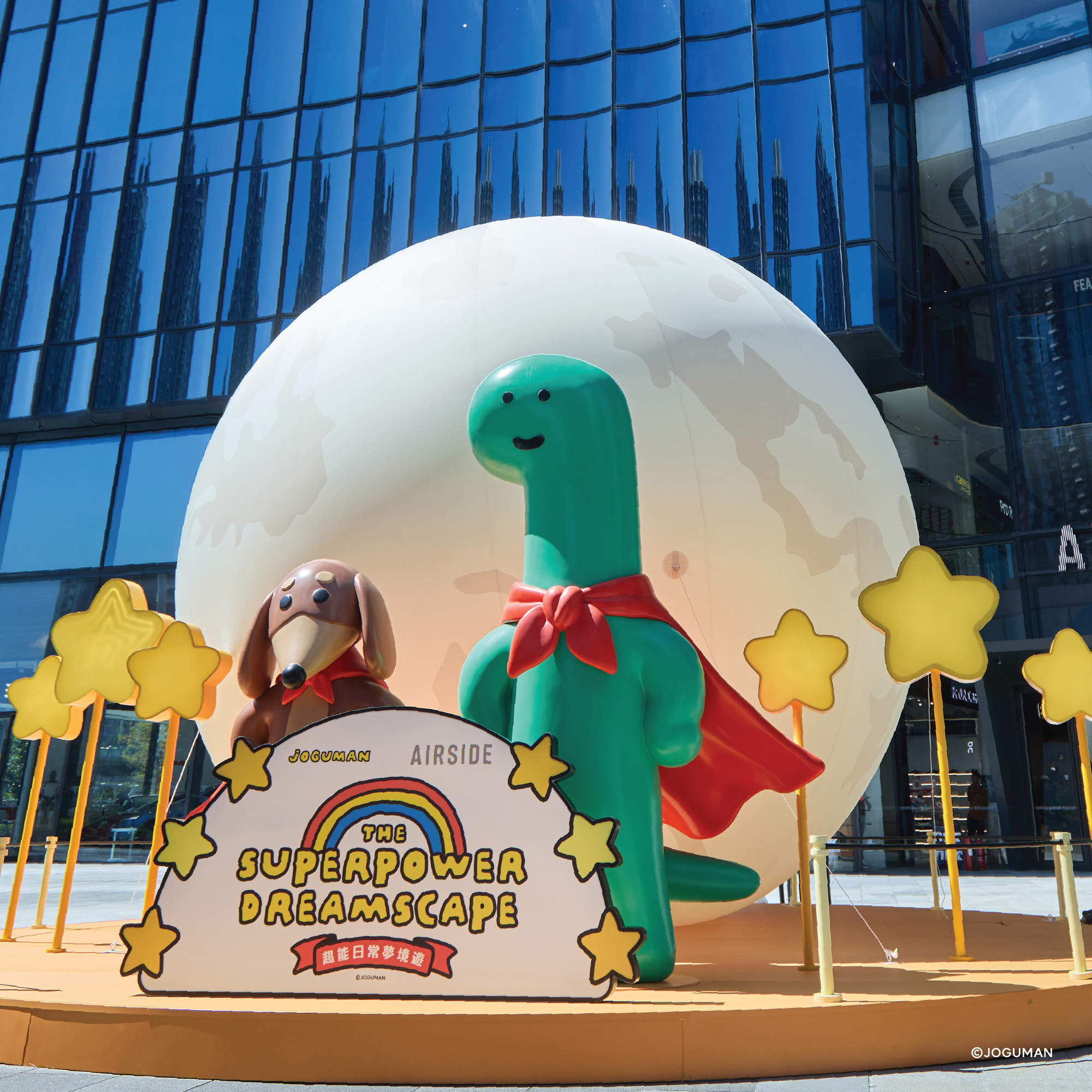 今個中秋,超人氣的的療癒系恐龍角色 IP —「JOGUMAN」登陸 AIRSIDE。BRACHIO(芭奇奧)及 寵物狗 WOODY(葫迪)等 JOGUMAN,將帶領大家漫遊 JOGUMAN 夢境打卡位,以輕鬆幽默的方式,提醒大家珍惜身邊每一份快樂和溫暖,共度佳節。
