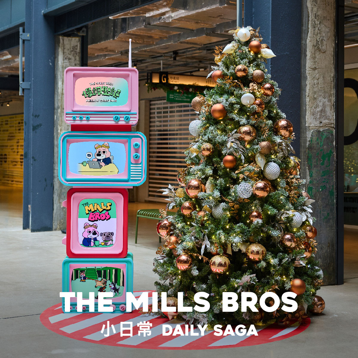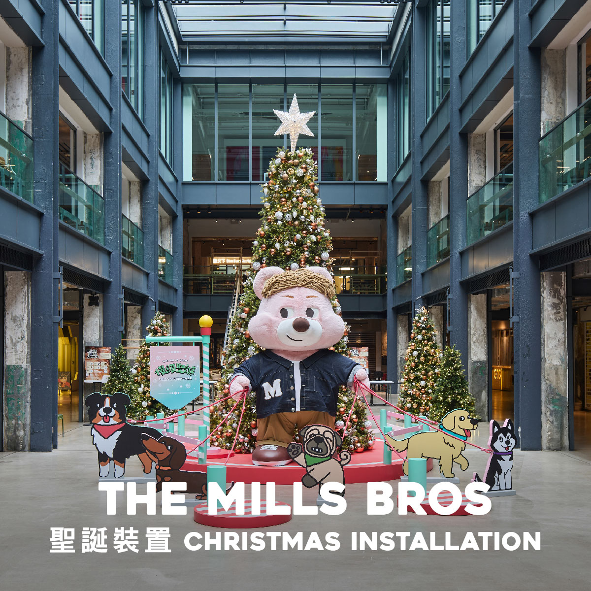 歡迎帶同愛寵一起與巨型Mill & Jack Jack在聖誕樹前打卡!順便欣賞The Mills Bros輕鬆又暖心的幽默插畫小故事。