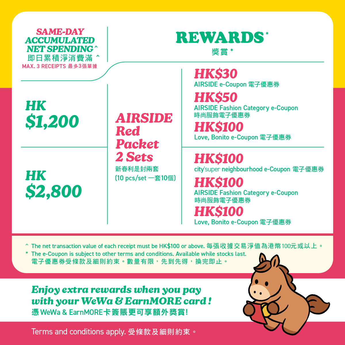 -所有顧客必須於消費交易日當日親臨換領地點,並加入NF Touch會員計劃及出示最多3張AIRSIDE商家發出的合資格消費收據及相應電子支付交易存根,方可換領獎賞